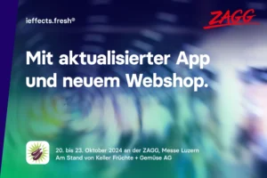 Die Zagg ist die führende Fachmesse für die Gastronomie und Hotellerie in der Schweiz und bietet eine ideale Plattform, um Innovationen und Trends zu entdecken. Vom 20. bis 23. Oktober 2024 präsentieren wir am Stand der Fa. Keller Früchte + Gemüse AG unsere ieffects.fresh®-Lösung. Nutze die Gelegenheit, unsere Lösung live zu erleben und lass Dich von den spannenden Möglichkeiten überzeugen.